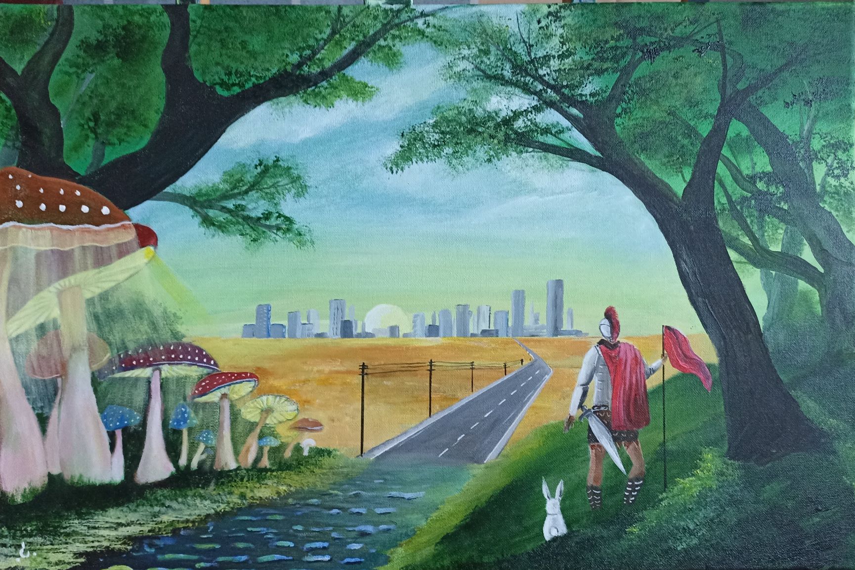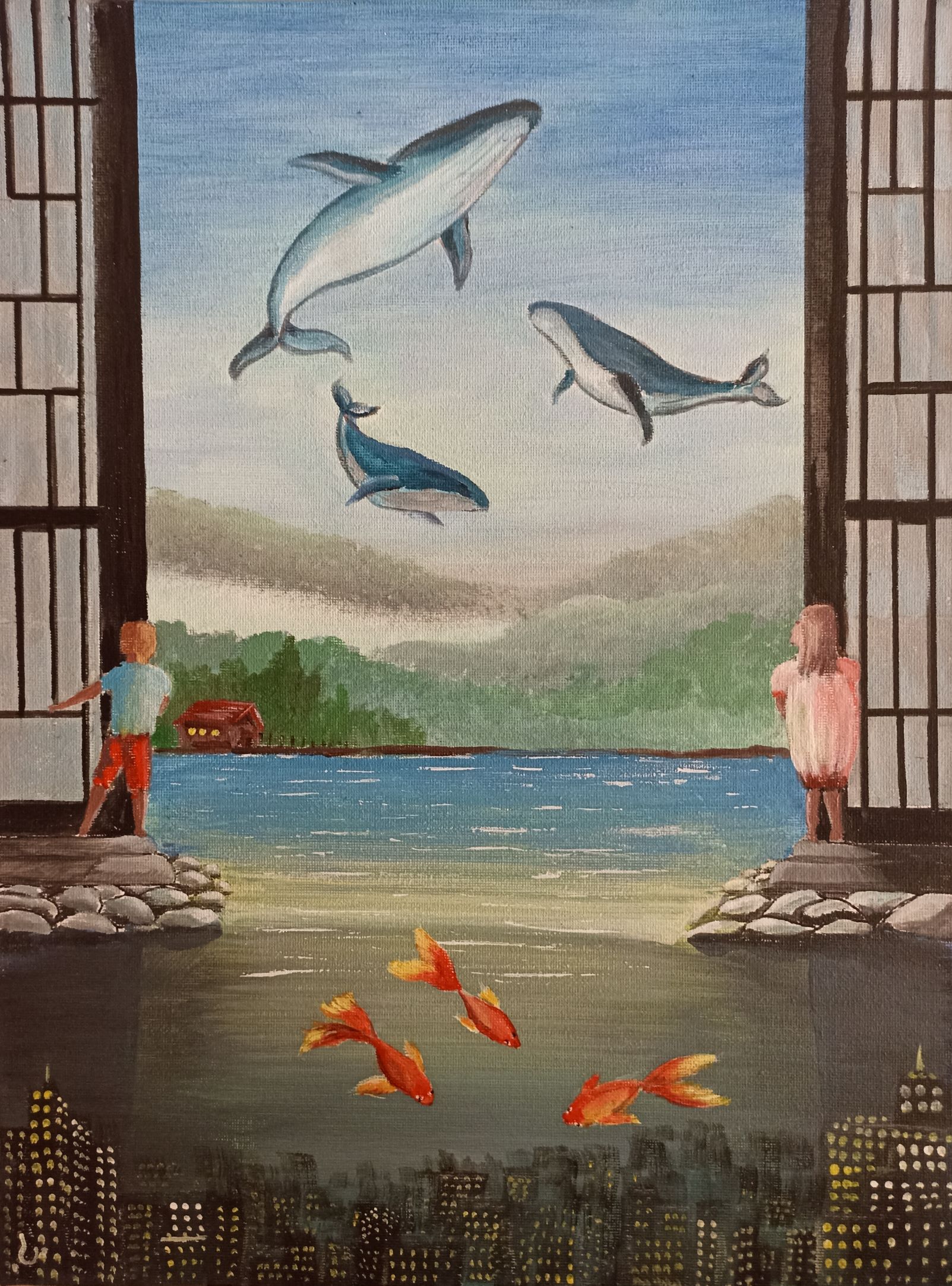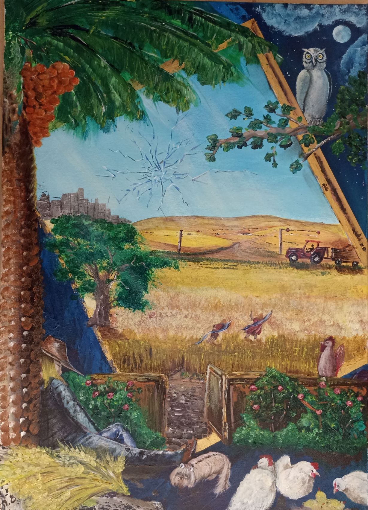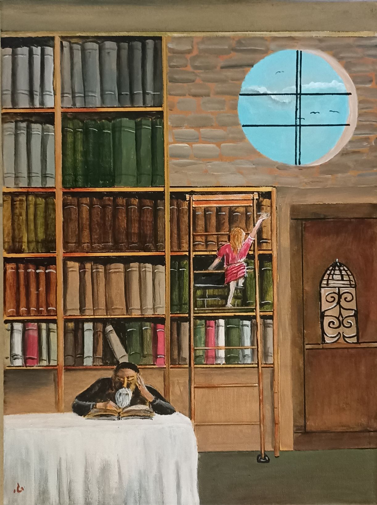 Drawing on his background as a designer, gardener, and practitioner of folk medicine, Gedalyahu depicts the world our eyes cannot see—the spiritual realm. He attunes himself to the energies that flow from people and from nature, translating these energies onto canvas. His sources of inspiration include life itself, nature, literature, music, and the work of other artists. His works often lean toward the absurd or the humorous (some would even say childlike), yet their aim is to reveal truth. Gedalyahu is a classical surrealist in that he works in a meditative state, allowing his subconscious to shape the narrative of his paintings. Every element carries deep symbolic meaning. What may appear playful or lighthearted in his work is, in fact, a profound exploration of the meaning of life. Rather than decoding the paintings for the viewer, Gedalyahu prefers to allow each person to connect with the work in their own way. He relinquishes control over meaning to the viewer, understanding that his role is complete once he sets down his brush and steps away from the work. Gedalyahu is a self-taught painter who came to art after many years of working in folk medicine. He has exhibited in several exhibitions. A Tenant to Remember Gedalyahu Hortig There was a tenant here; we’ve already forgotten his name. He went off to look for himself. Abandoned what once was his fortress, dismissed his neighbors, let his garden go. He always missed the mark, never quite content. He chased happiness, yet always made do with this and that and that… There was a tenant here; we’ve already forgotten his name. He went off to look for himself. He regularly forgot to return his debts, to clean up what was left behind. His eye was narrow toward others, though he himself was never lacking. There was a tenant here; we’ve already forgotten his name. He went off to look for himself. No matter—we’ll manage. Another tenant will come.