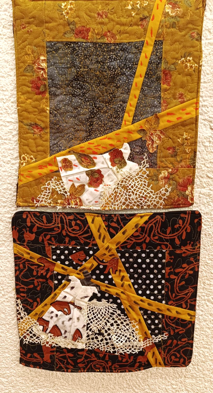 Yochi Dayan (Moshav Dekel, Eshkol), Chana’leh Series, 2025, Cutting and joining fabrics with a sewing machine, appliqué, fabric dyeing, hand embroidery, fabric origami, and free-motion machine stitching, 34x175 cm