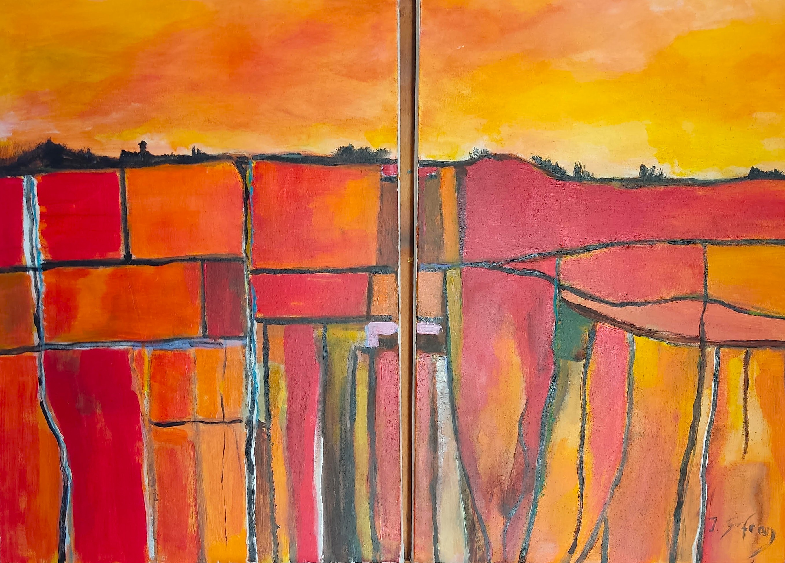 חני כהן זדה (טלמון, בנימין), באש אתה עתיד לבנותה, 2024, שמן על בד, 90x75 ס"מ