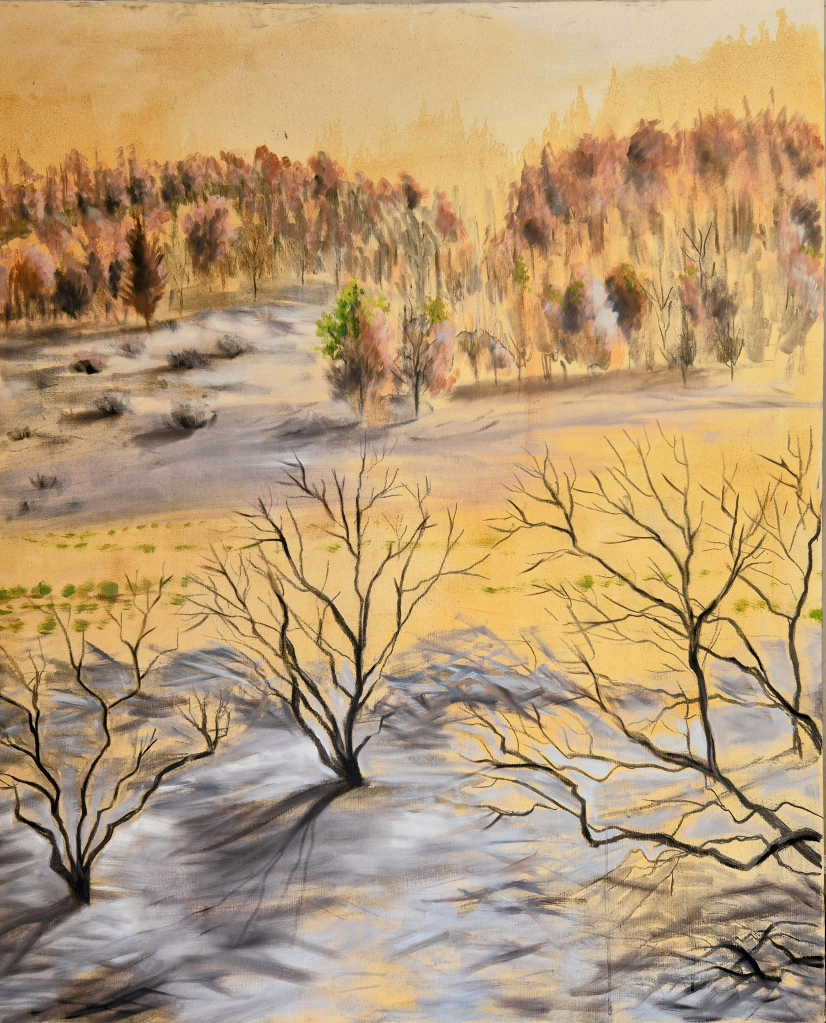 ליבי יער-הורוביץ (כפר אדומים, בנימין), Regrow, 2025, פחם ושמן על בד כותנה, 120x100 ס"מ